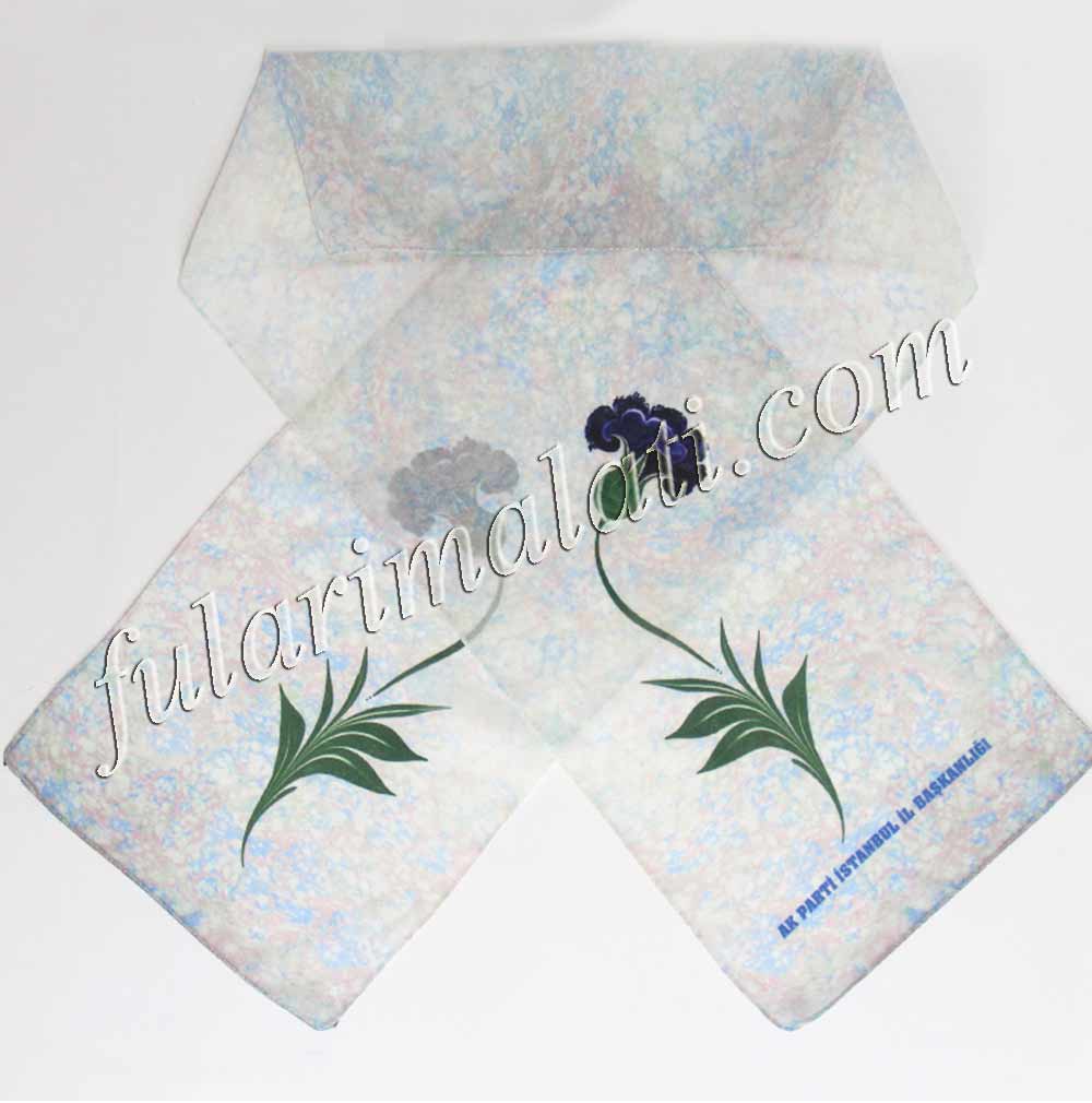Toptancı imalatçı ajans ve şirketlerin ihtiyacı olan özel dijital baskılı fular şal tasarımı baskıları ve imalatı. Özel tasarım ve baskılı fular imalatı. 1.kalite regule şifon, saten ya da krep kumaşlardan logo arma isim yazı ve özel renk, özel desen baskılı. Ürünlerimizde kullandığımız baskılar insan sağlığına zarar vermeyen baskıdır. (eko-teks belgelidir.)