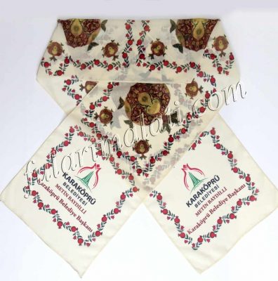 1.kalite regule saten, şifon yada krep kumaşlardan, logo arma isim yazı ve özel renk, özel desen baskılı. Ürünlerimizde kullandığımız boyalar insan sağlığına zarar vermeyen baskıdır. (eko-teks belgelidir.)